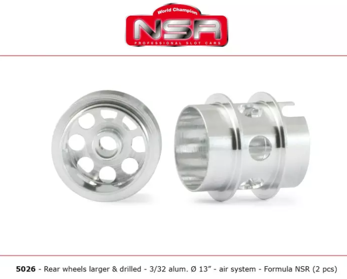 NSR 5026 3/32 Wheels – Rear Larger & drilled Ø 13x13mm – Ultralight & very accurate AIR SYSTEM for Formula 86/89 (2pcs)