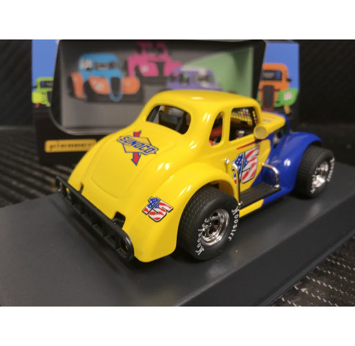 Modelled after the popular Legends Racing Series cars, this is the ’37 Dodge Coupe in Sunoco racing livery. This is one of two team cars in the classic yellow and blue colours.